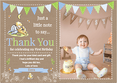 FLAT Winnie The Pooh Baby Boy Thank You Cards